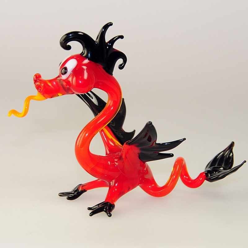 Drachen stehend lustig, rot-schwarz Höhe ca. 8 cm, Länge ca. 12 cm