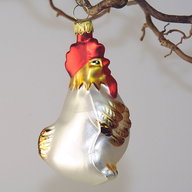 Huhn zum hängen, weiß matt handbemalt H ca. 8 cm