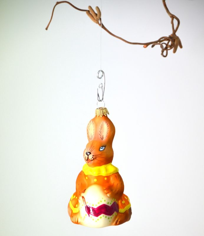 Osterhase hängend mit Ei dunkelbraun Kleid orange Höhe ca. 11cm Breite ca. 6cm