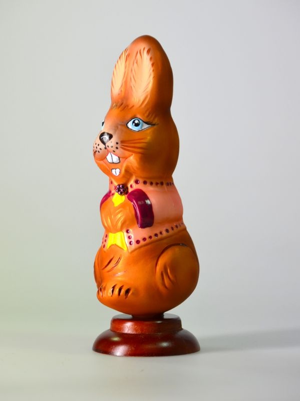 Osterhase in formgeblasenes Glas / stehend H. 17cm, B. 6cm dunkelbr. rosa Jacke