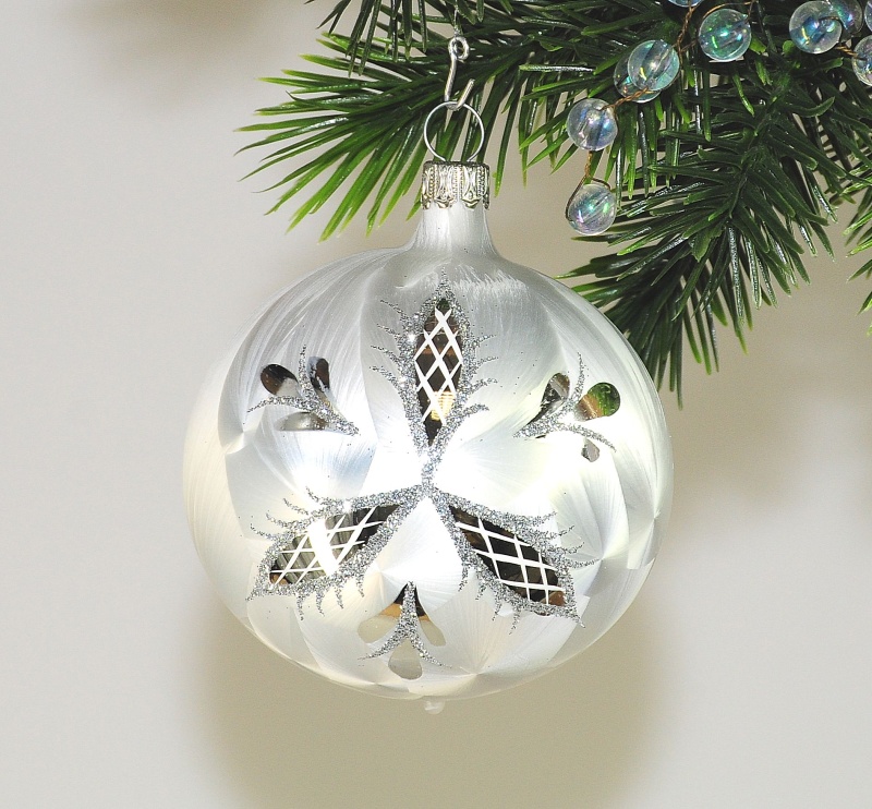 Kugeln 6 cm, Eislack weiß, Waffelmuster 5 Stück, d 6 cm