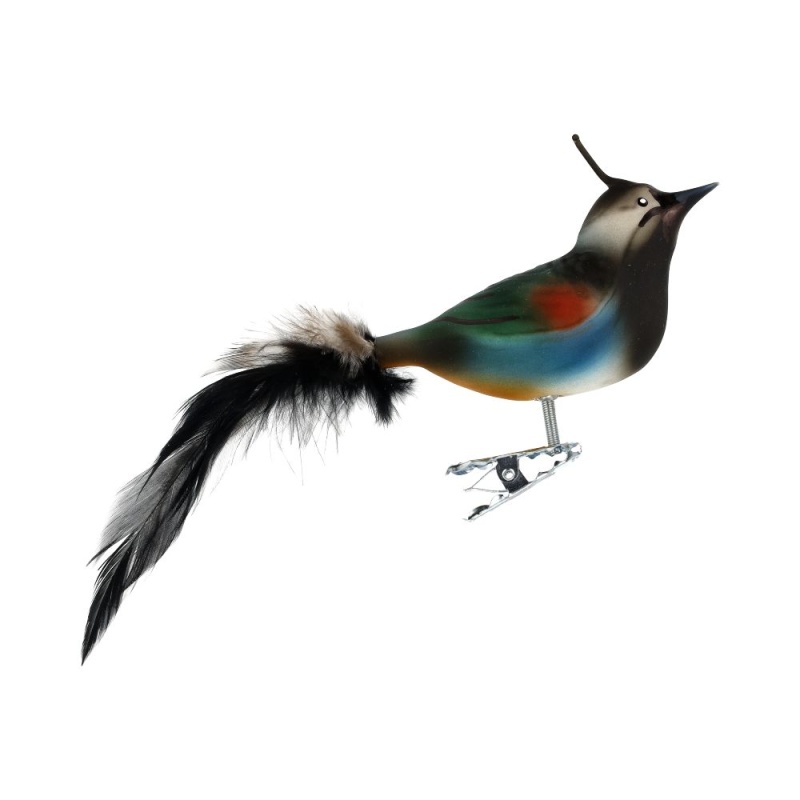 Kiebitz mit Naturfedern Gesamtlänge ca. 15 cm, Glaskörper ca. 9 cm