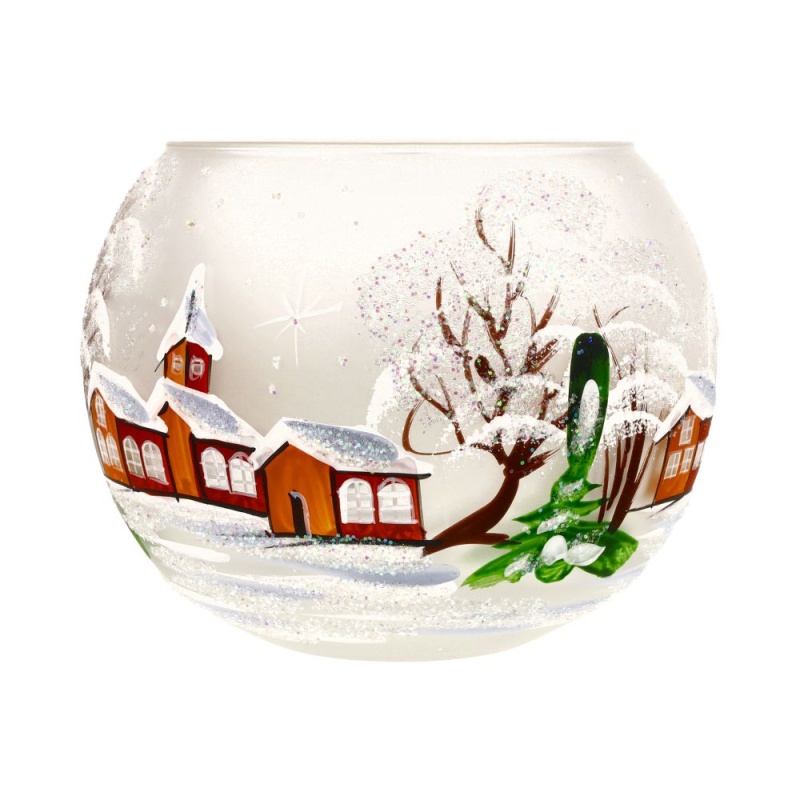 Windlichtbecher klein, mattweiß, Kirchdorf im Winter H ca. 5,5 cm, Ø ca. 7,5 cm
